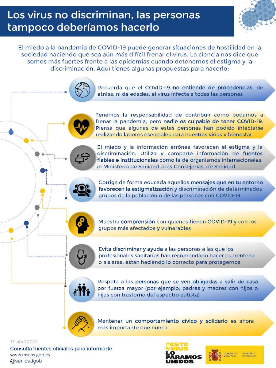 Infografía sobre discriminación, Coronavirus y VIH