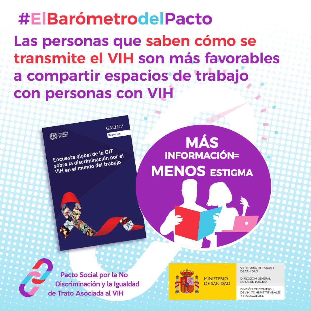 Las personas que mejor comprenden los mecanismos de transmisión del VIH son más favorables a compartir espacios de trabajo con personas con el VIH, según el estudio. Porque la información es poder y Más Información=Menos Estigma.